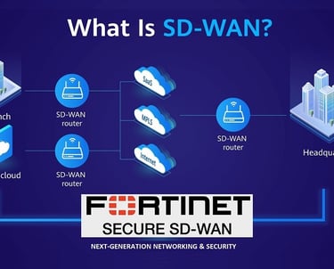Fortinet SD-WAN is a software-defined wide-area networking (SD-WAN) solution integrated into Fortinet's FortiGate next-generation firewalls. It enhances network performance, security, and cost efficiency by dynamically routing traffic across multiple WAN links (MPLS, broadband, LTE, etc.) based on real-time conditions. Fortinet SD-WAN offers built-in security, centralized management, application-aware routing, and automation, making it a solid choice for enterprises looking to optimize cloud and SaaS connectivity while maintaining strong cybersecurity.